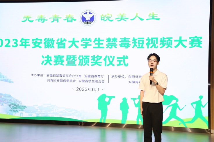 本网讯 6月21日,由安徽省禁毒委员会办公室、安徽省教育厅、共青团安徽省委员会、安徽省学生联合会共同联合主办的2023年安徽省大学生禁毒短视频大赛决赛暨颁奖典礼在合肥师范学院大学生活动中心举行。ku游官方学生团队荣获省赛一等奖。