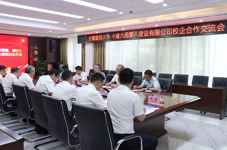 本网讯 7月6日,校党委常委、副校长闵杰率队赴中建六局第八建设有限公司开展校企合作交流暨“访企拓岗促就业”专项行动。中建六局华中分局执行局长、第八建设有限公司党委书记、董事长赵光远,副总经理占昌义,首席专家毕磊,财务副总监郭东亮,技术质量部经理、安建大校友徐海标以及学校就业工作处、建筑与规划学院、环境与能源工程学院等部门负责人参加相关活动。