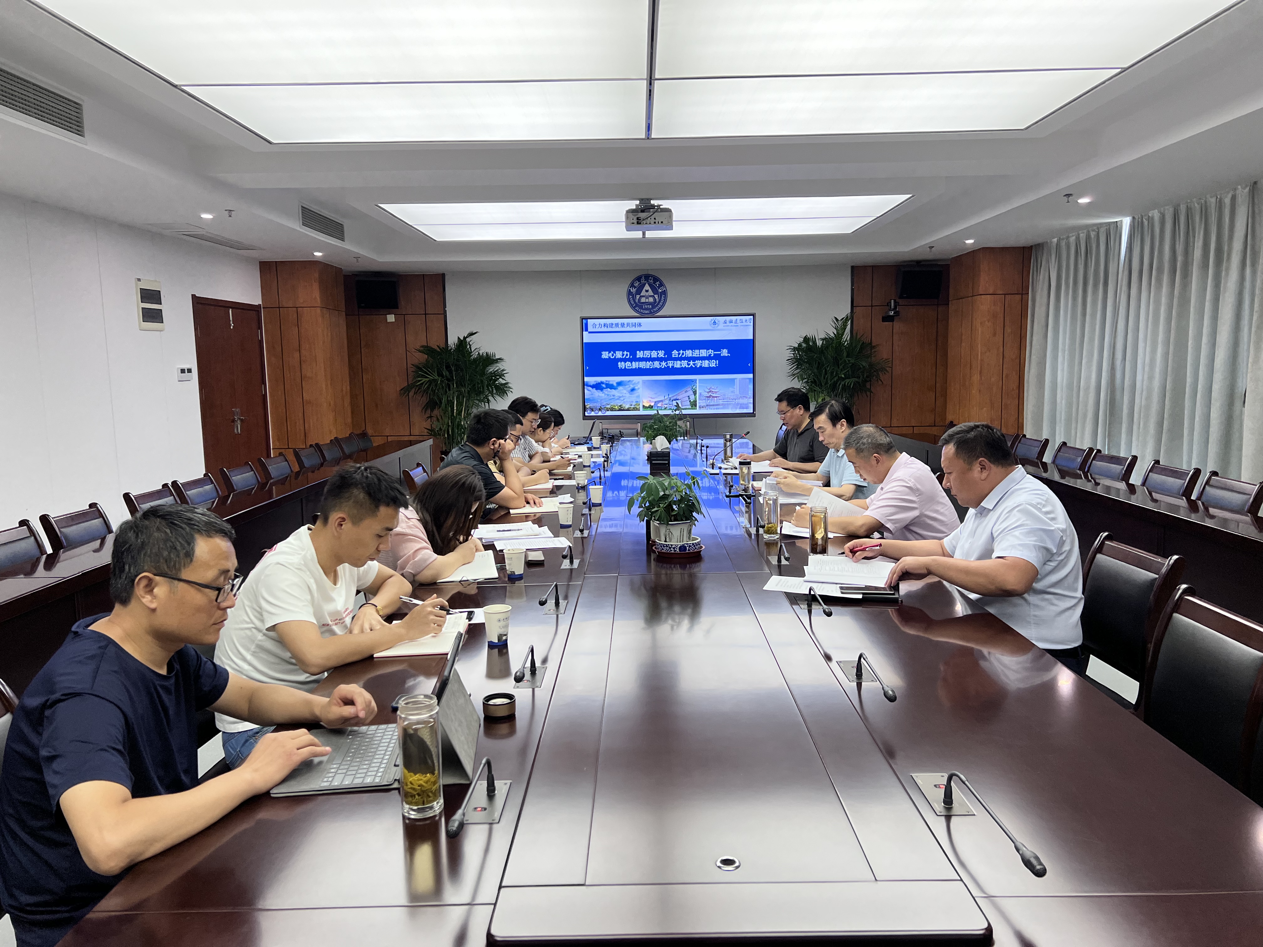 本网讯 为固化学校“以评促建、以评促改、以评促管、以评促强”显著成效,谋划思考下一步审核评估整改工作,7月10日下午,学校评建办在南校区21楼第二会议室召开评估总结与整改谋划工作会。会议由评建办主任、校党委常委、副校长闵杰主持,评建工作领导组组长、校党委书记孙道胜出席并作总结发言,评建办全体成员参加会议。