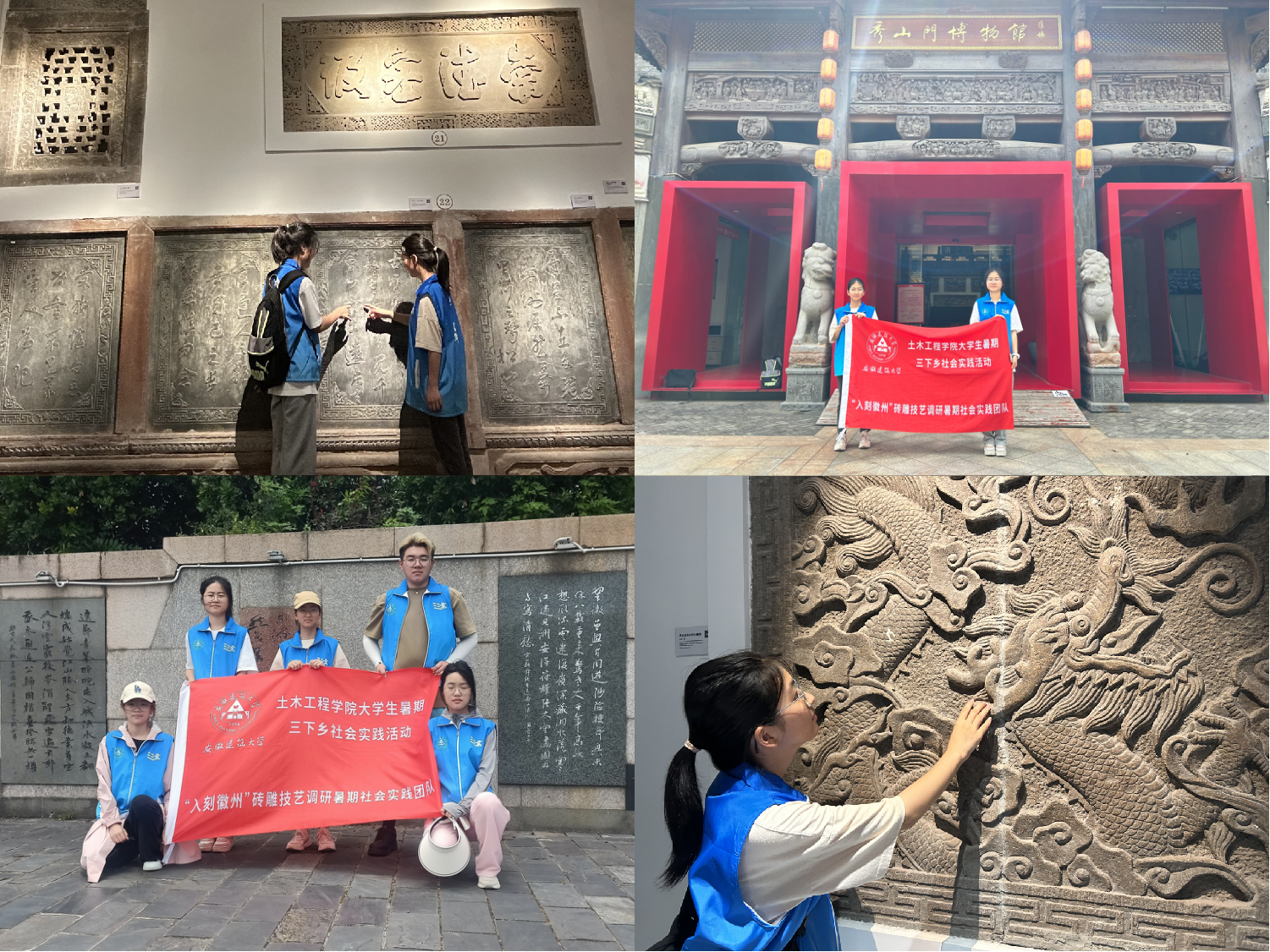 实践团队不仅在寻访中发现徽州砖瓦材料在当地使用较少,认识到徽州砖雕销售市场存在一定滞待性和局限性,也跟随其他桥梁队伍考察了通济桥、杏花村大桥等遗产古桥,了解到徽州砖雕的传统制作技艺如何与桥梁设计相结合及应用。通过暑期三下乡活动的开展,实践团队对徽州砖雕在徽州周边城市的应用与传播展开科学调研分析,也对徽州砖雕文化在桥梁工程中的应用有了更为深刻的了解。