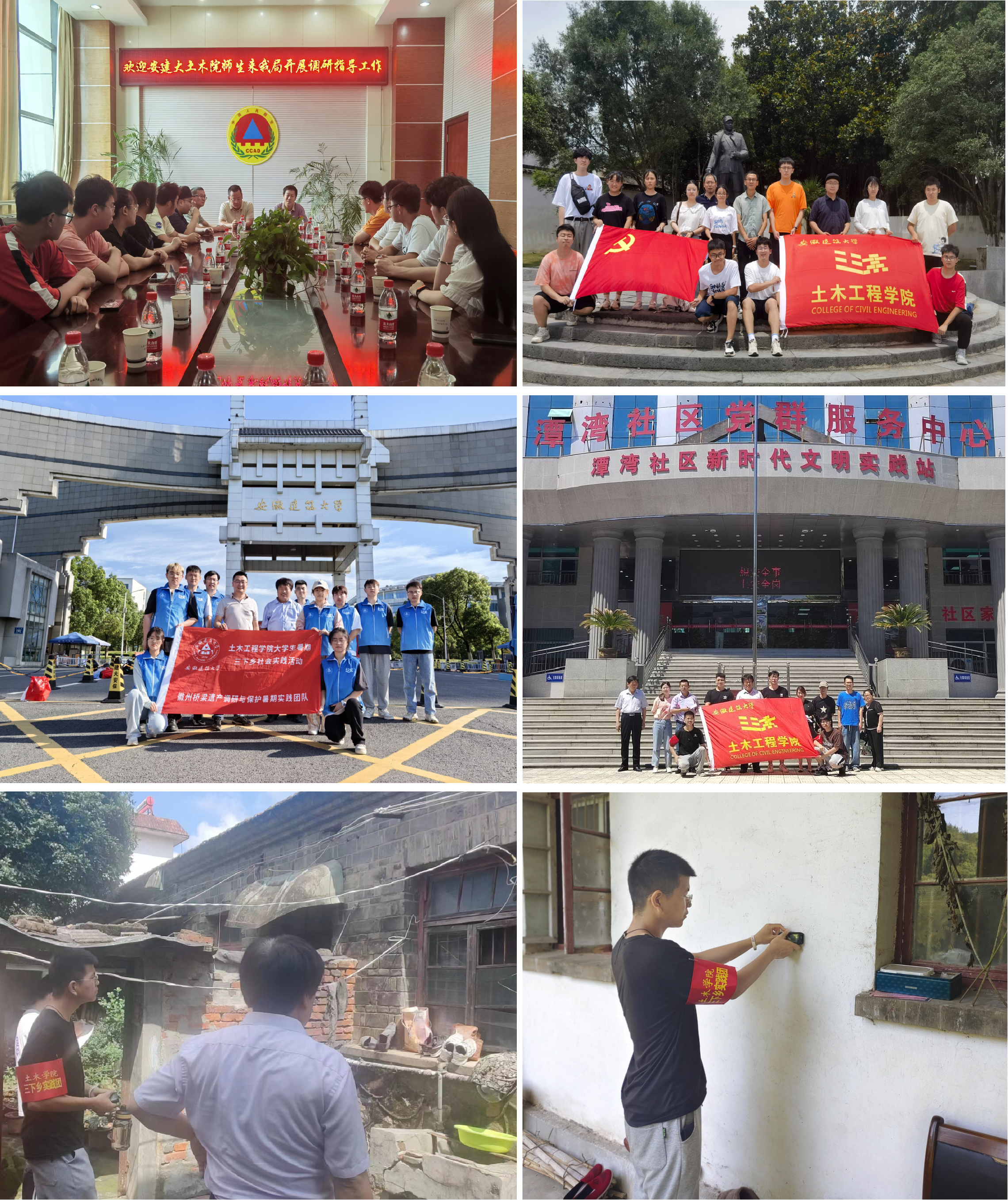在暑期社会实践活动中,学院各团队成员收获的不仅仅是专业知识,更多的是对革命先辈的崇高敬意、对乡村振兴的全新理解和对自己专业肩负责任的重新认识;是建大土木人所承担的国家建设与发展的使命与自豪,是“厚土承德 菁木兴华”院训精神的具体落实。面向实际、深入实践、知行合一,土木青年以脚步丈量徽州大地,了解国情民情,用专业知识和青年智慧推动乡村振兴,用青春书写无愧于时代、无愧于历史的华彩篇章。(文/图:马智鑫 王月竹 曹星宇 丰莹 魏婧妍 方博洋 李一凡 阮从严 李菁菁;审核:王媛)