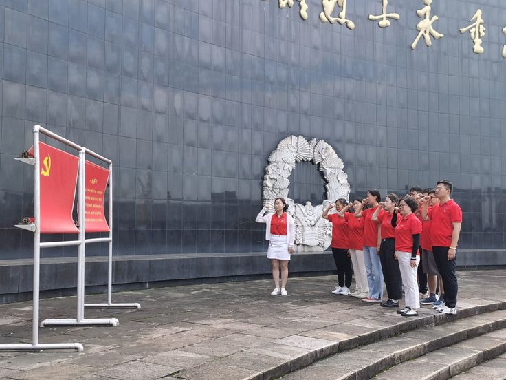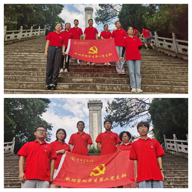 “我志愿加入中国共产党,拥护党的纲领,遵守党的章程,履行党员义务,执行党的决定,严守党的纪律......”在皖南事变烈士陵园纪念广场,实践团师生党员面向党旗,重温入党誓词,回顾初心使命。