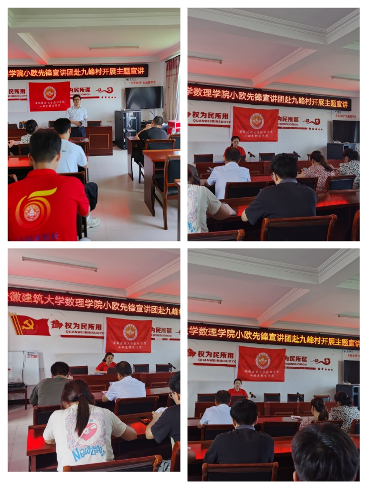 数理学院乡村振兴青年观察家实践团前往泾县黄村镇九峰村的大夫第,感受老一辈革命先烈的精神。在胡荣烈士纪念广场前,倾听胡荣烈士献身革命壮烈牺牲的感人事迹。大家依次走近瞻仰烈士纪念碑,缓步绕行,面向革命烈士纪念碑行鞠躬礼,在缅怀中深刻体会革命英烈不畏艰难、奋勇前行的精神。随后,数理学院小欧先锋宣讲团赴学院党建共建单位——泾县黄村镇九峰村开展“缅怀先烈忆初心 赓续血脉担使命”主题宣讲活动。数理学院“小欧”先锋宣讲团成员李晓茹、王欣芮、王京田分别围绕“皖南事变”中英勇牺牲的新四军副军长项英、副参谋长周子昆、政治部主任袁国平三位烈士的英勇事迹开展宣讲,带领党员同志们深入学习领会新四军铁军精神—“铁的信仰 铁的担当 铁的意志 铁的纪律”。