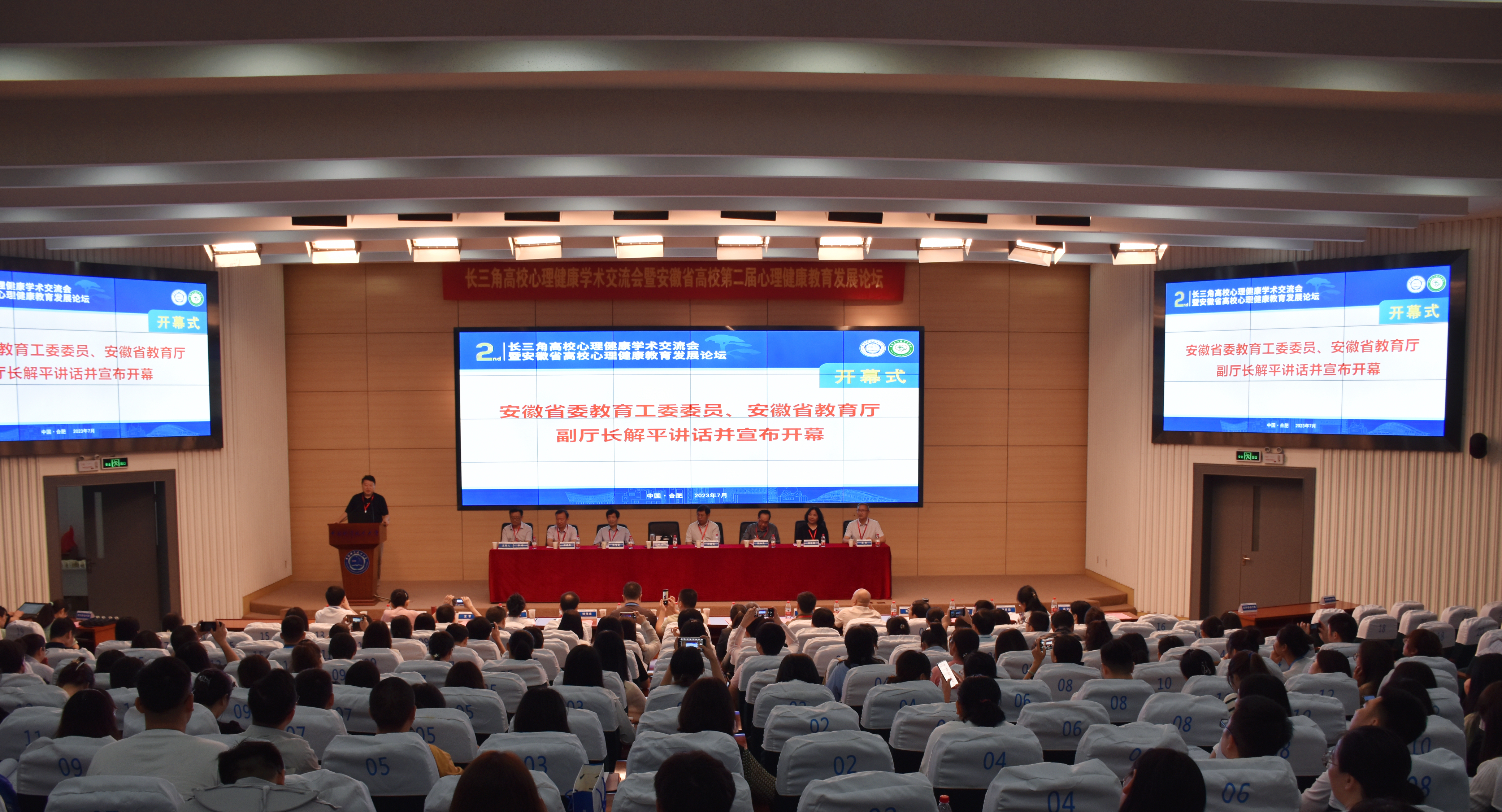 本次大会由中国科学技术大学、安徽省心理卫生协会大专委主办,主题为“踔厉奋发心征程 勇毅前行向未来”,来自长三角高校的300余名专家、学者和一线心理健康教育工作者共话心理健康教育。开幕式上,中国科学技术大学党委副书记邓建松教授致欢迎辞;安徽省委教育工委委员、安徽省教育厅副厅长解平讲话并宣布会议开幕,并指出,心理健康工作应加强宏观指导、强化工作督查机制,坚持效果导向、问题导向,有效建立预防机制、发现机制、应对机制、联动机制、保障机制和责任机制,将心理育人工作落到实处。
