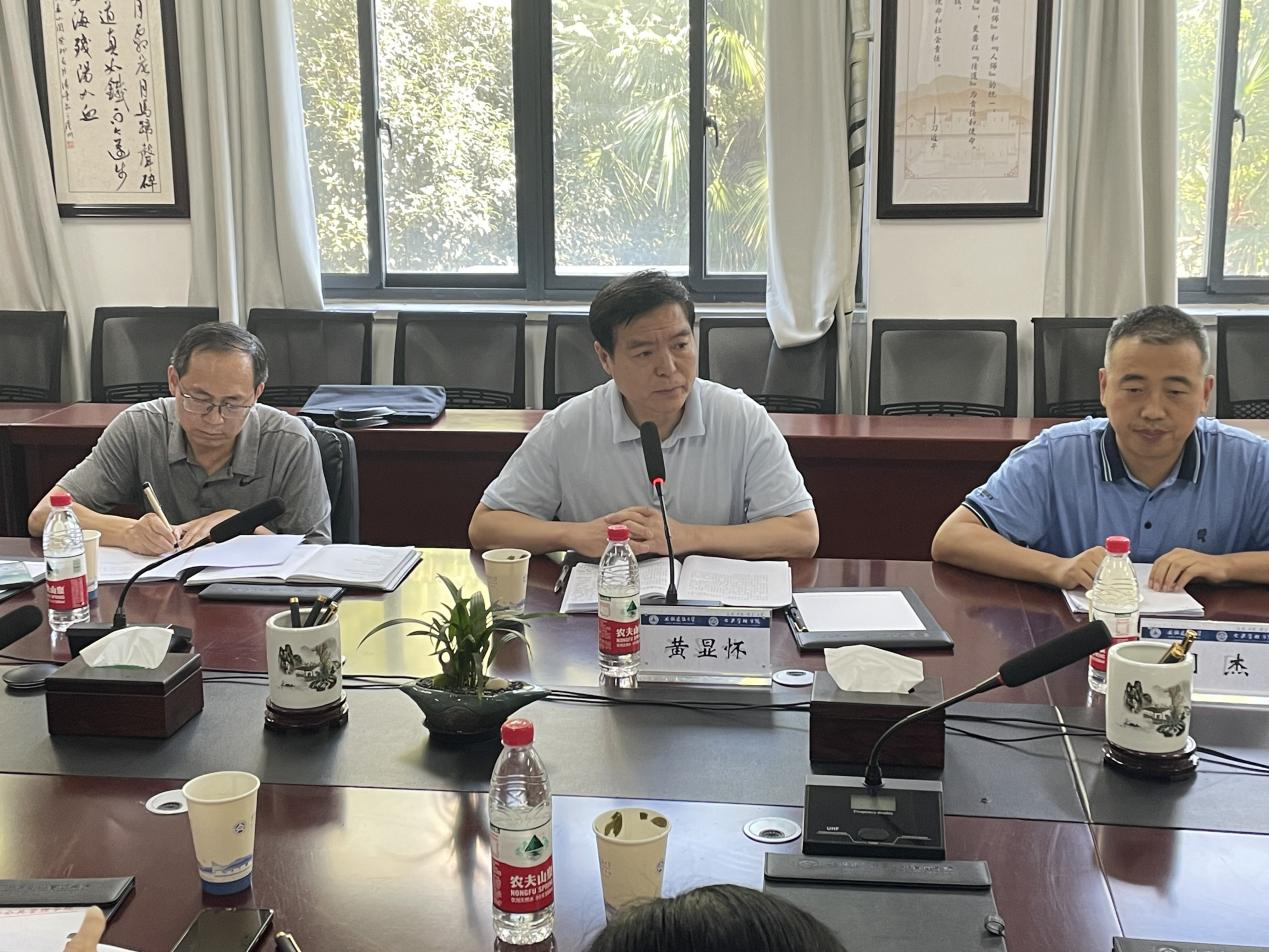 本网讯 8月8日,学校在北校区F楼209会议室召开专业结构优化调整研讨会。校党委副书记、校长黄显怀,校党委常委、副校长闵杰出席,发展规划处、人事处、教务处、就业工作处及各学院负责人参加会议。会议由闵杰主持。