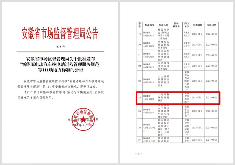 本网讯 近日,安徽省市场监督管理局发布第8号公告,由安徽省自然资源厅归口,安徽省不动产登记中心、ku游官方主编,安徽省城乡规划设计研究院有限公司、安徽尚原规划咨询有限公司参编的安徽省地方标准《土地储备规划编制规范》获批发布,标准编号DB34/T 4466-2023,于2023年8月31日正式实施。