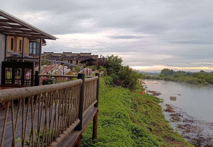 古镇老街最有特色的建筑是沿江傍水建造的一排吊脚木楼,俗称“吊栋阁”。调研团看到,这片延绵几千米的古建筑有三分之一坐落在陆地,三分之二悬空铺设,每间有6-8根长木柱支架悬空于青弋江左岸,故有“江南千条腿” 之称。这种独特的建筑构造,使得其泄洪能力大大增强,巧妙地缓解了洪水对房屋的压力,留下“永不倒镇”的佳话。