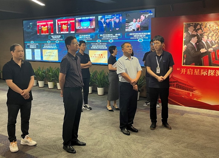 最后,蔡国军看望了在我校借调在深空探测实验室的吴盾老师,详细了解了其在实验室的工作、生活等情况,勉励其在实验室扎实工作,做好学校与实验室长期、稳定交流的“桥梁”。(文/图:张艳;审稿:王媛)