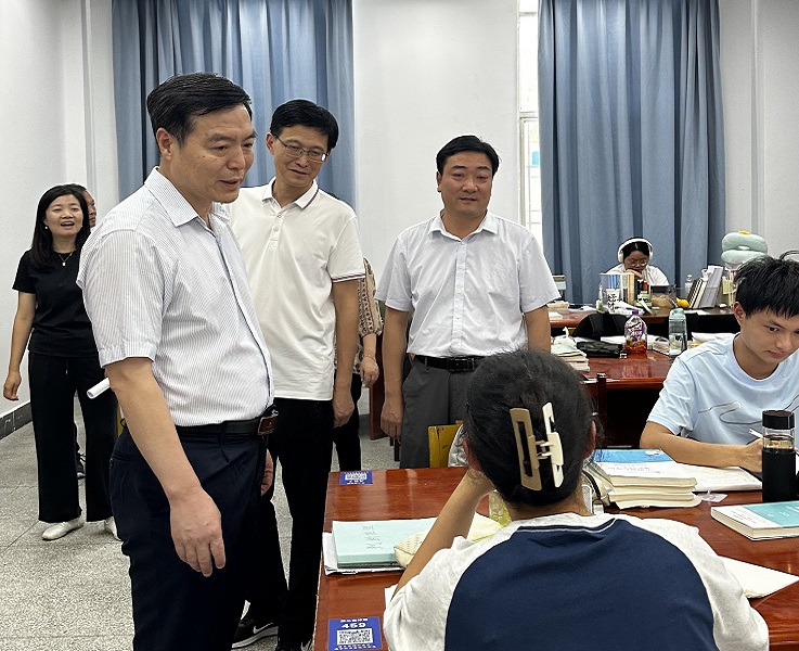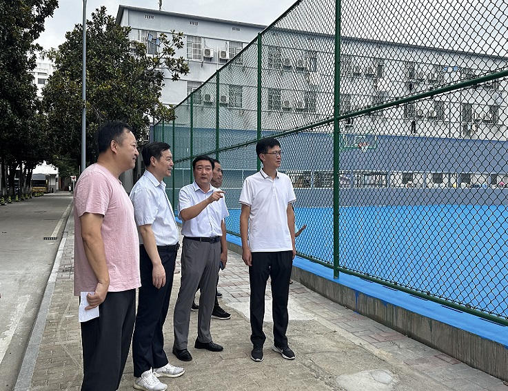 在新建篮球场、图书馆,黄显怀听取后勤集团负责人关于暑期篮球场建设及图书馆改造工作汇报,深入了解篮球场建设工序、图书馆改造内容。在学生自修室,亲切询问学生对图书馆改造的意见和建议,并对自习环境及桌椅配备提出指导意见。