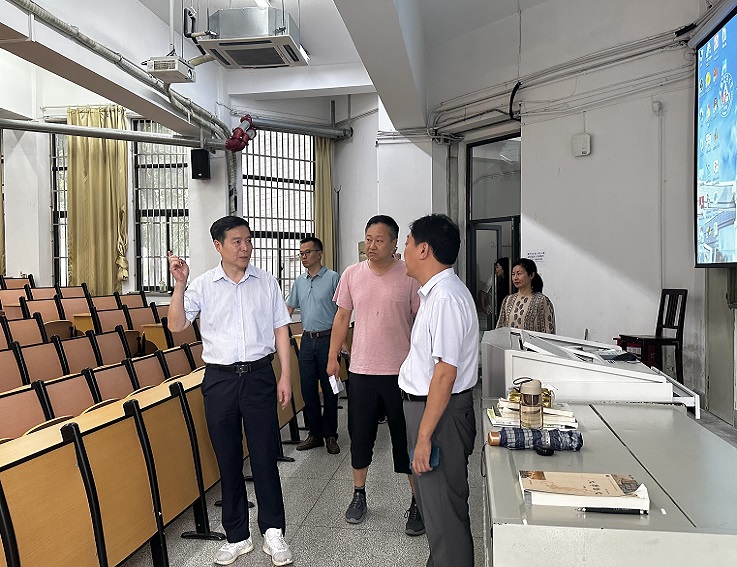 在F教学楼,黄显怀逐层视察公共空间及智慧教室使用情况。他强调,要持续做好新学期课堂教学、教学设施运行、教学条件保障,并对报废资产提出明确要求。