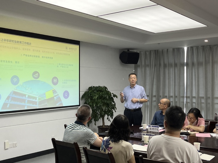 会上,研究生院负责人汇报了2023年上半年学校研究生教育工作总体情况,对下半年研究生教育重点工作进行了布置和解读;各学院研究生工作分管院长及导师代表就如何做好研究生教育教学工作,切实提升研究生培养质量作了深入的交流研讨。