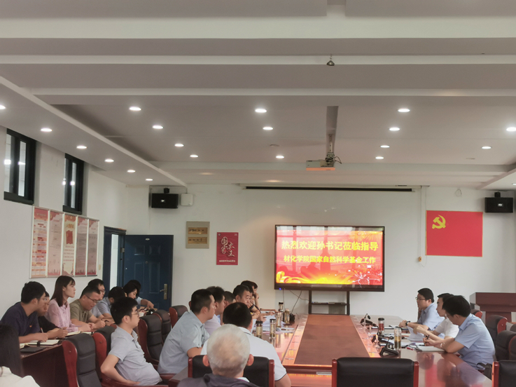 9月13日上午,校党委书记孙道胜带队到材化学院调研指导国家自然科学基金工作。学院领导班子成员、各系中心主任、青年教师共40余人参加调研座谈会。会议由丁益主持。
