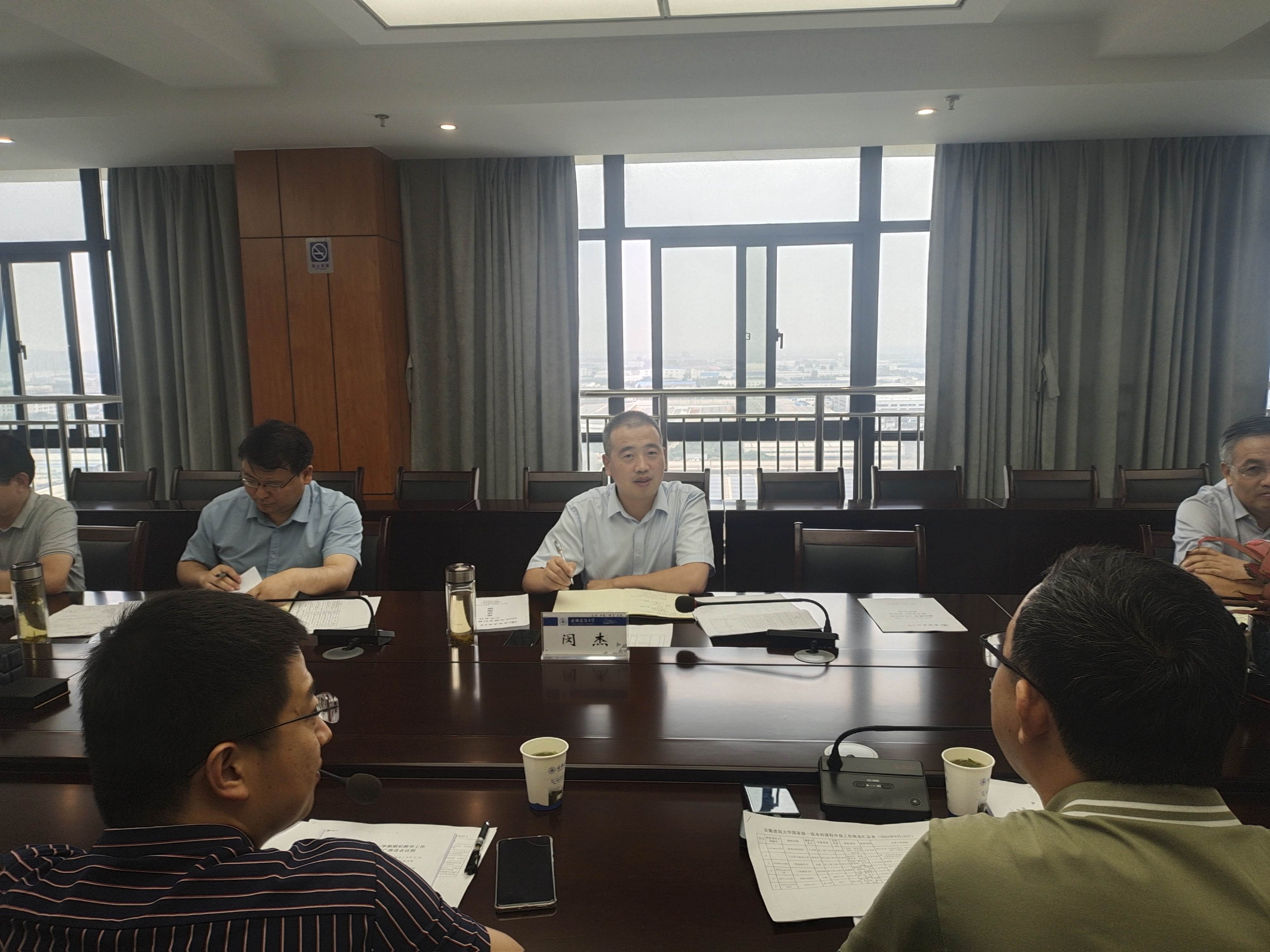 本网讯 9月15日,学校在南校区实验综合楼21楼第三会议室召开期初教学工作会议暨一流专业宣广推进会。校党委常委、副校长闵杰主持会议,校教学督导组、各教学单位、宣传部、教务处、教师发展中心、实验室与设备管理处相关负责人参加会议。