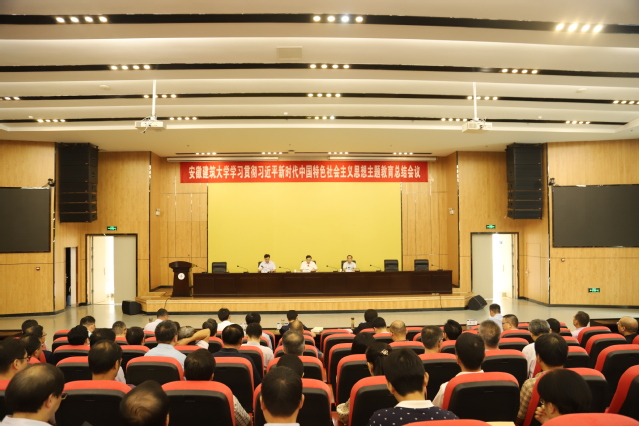 本网讯 9月19日下午,学校学习贯彻习近平新时代中国特色社会主义思想主题教育总结会议在南校区实验综合楼二楼报告厅召开。校领导班子成员,处级干部,各党支部书记,教授、教职工、学生党员代表以及民主党派主要负责人参加会议。省委第十巡回指导组副组长夏智明等出席会议并讲话,校党委书记孙道胜主持会议。