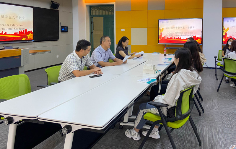 本网讯 9月20日,2023级来华留学生入学教育在南校区主教楼智慧教室举行,2023级留学生新生及2021、2022级留学生,以及国际交流合作处全体人员参加,校党委常委、副校长闵杰出席并讲话。