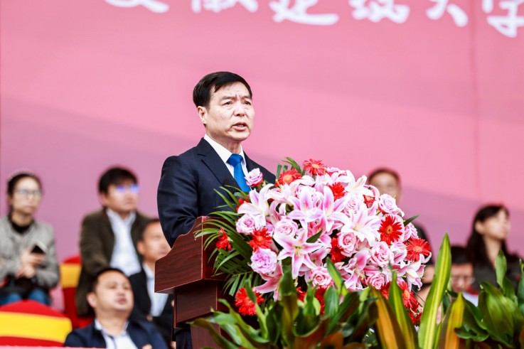 黄显怀教授在典礼上致辞。他代表全校师生员工欢迎5000多名新同学加入ku游官方,祝贺大家开启人生新的篇章,并就如何成为“新时代中国青年”向全体2023级新生寄予了三点希望:一是以理想为帆,不惧远航。“少年应有鸿鹄志,当骑骏马踏平川”;二是以奋斗为桨,善建担当。“道阻且长,行则将至;行而不辍,未来可期”;三是以创新为刃,破茧成蝶。“满眼生机转化钧,天工人巧日争新”。传承“进德、弘毅、博学、善建”的校训精神,不负时代重托,勇逐家国之梦,共赴青春之约,在ku游官方度过无悔的青春。