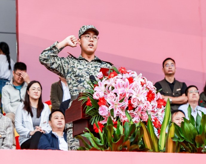 来自电子与信息工程学院的高川航同学带领全体2023级新生进行了入学宣誓,喊出了“请党放心,强国有我”的时代最强音。