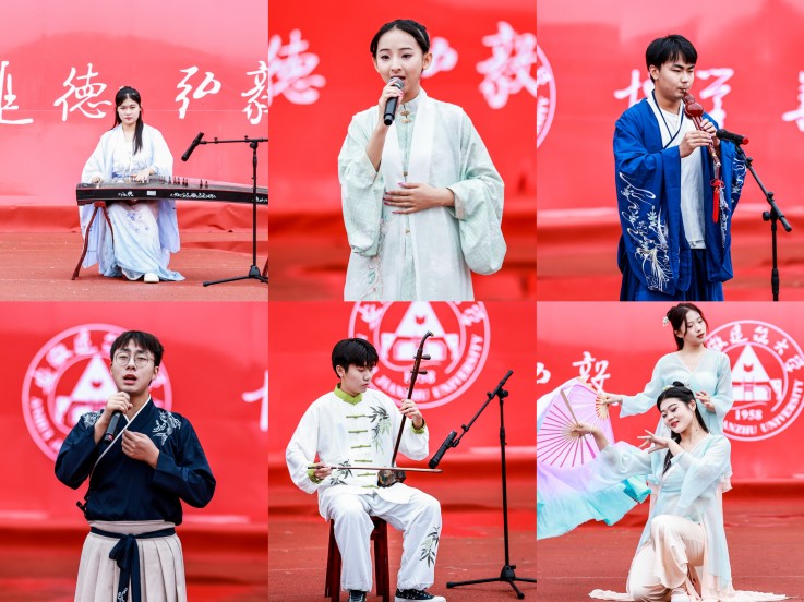 军训成果展示结束后,由各学院学生精心准备的暖场节目让南校区田径场的气氛更加热烈。同学们将中华优秀传统文化与现代歌舞创新性结合,用刚柔并济、气韵生动的古风演出,赢得在场师生的阵阵掌声。