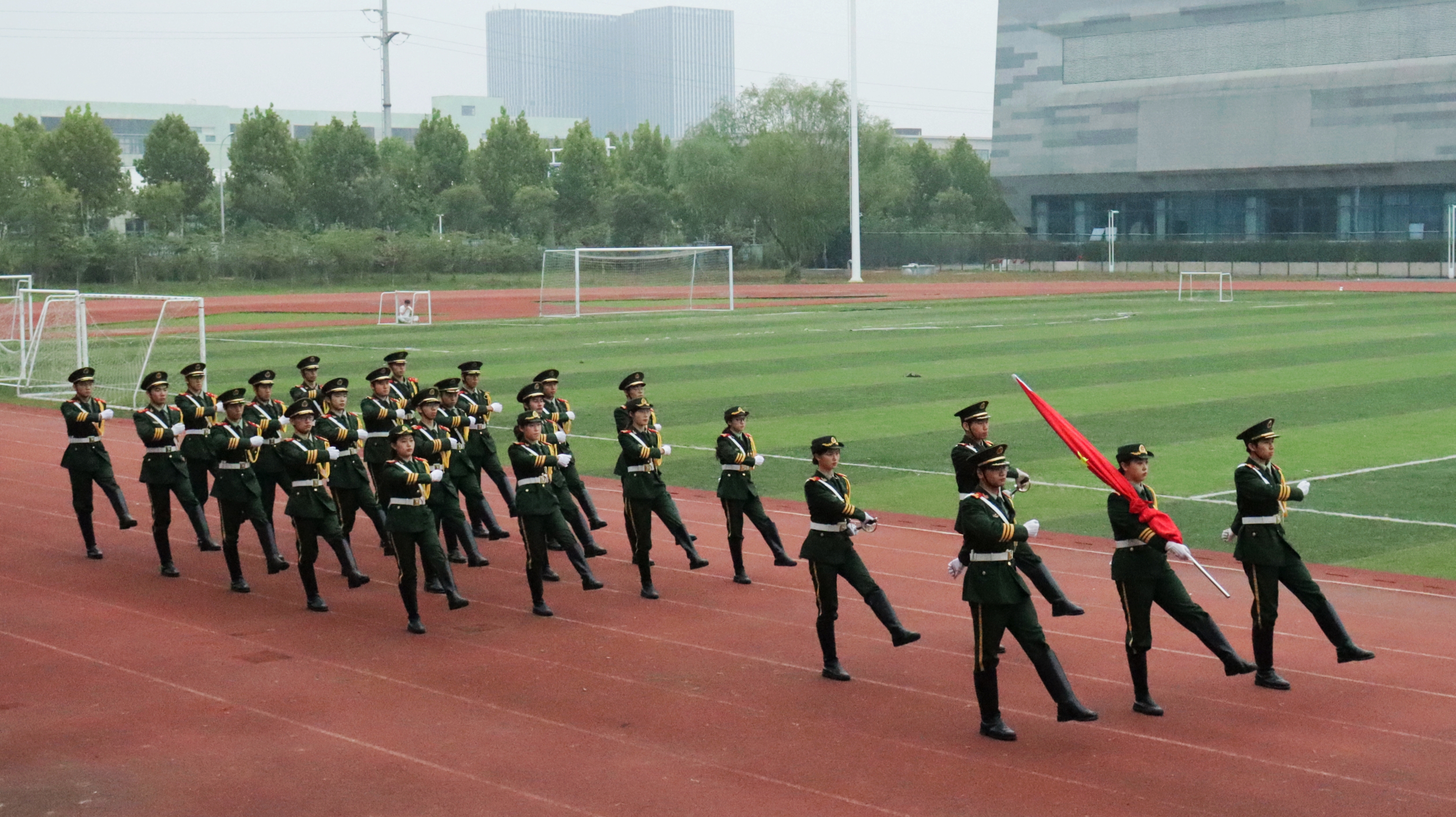 迎着清晨的朝霞,国旗护卫队整装待发,全体师生集合肃静,目送国旗。待军乐奏毕,“齐步走”口令响起,国护队的脚步铿锵,将红旗送上升旗台。鲜艳的五星红旗冉冉升起,嘹亮的国歌声响彻操场。众人心怀崇敬与爱戴地注视着那迎风飘扬的五星红旗,共同见证着祖国母亲走过的沧桑岁月与伟大历程。