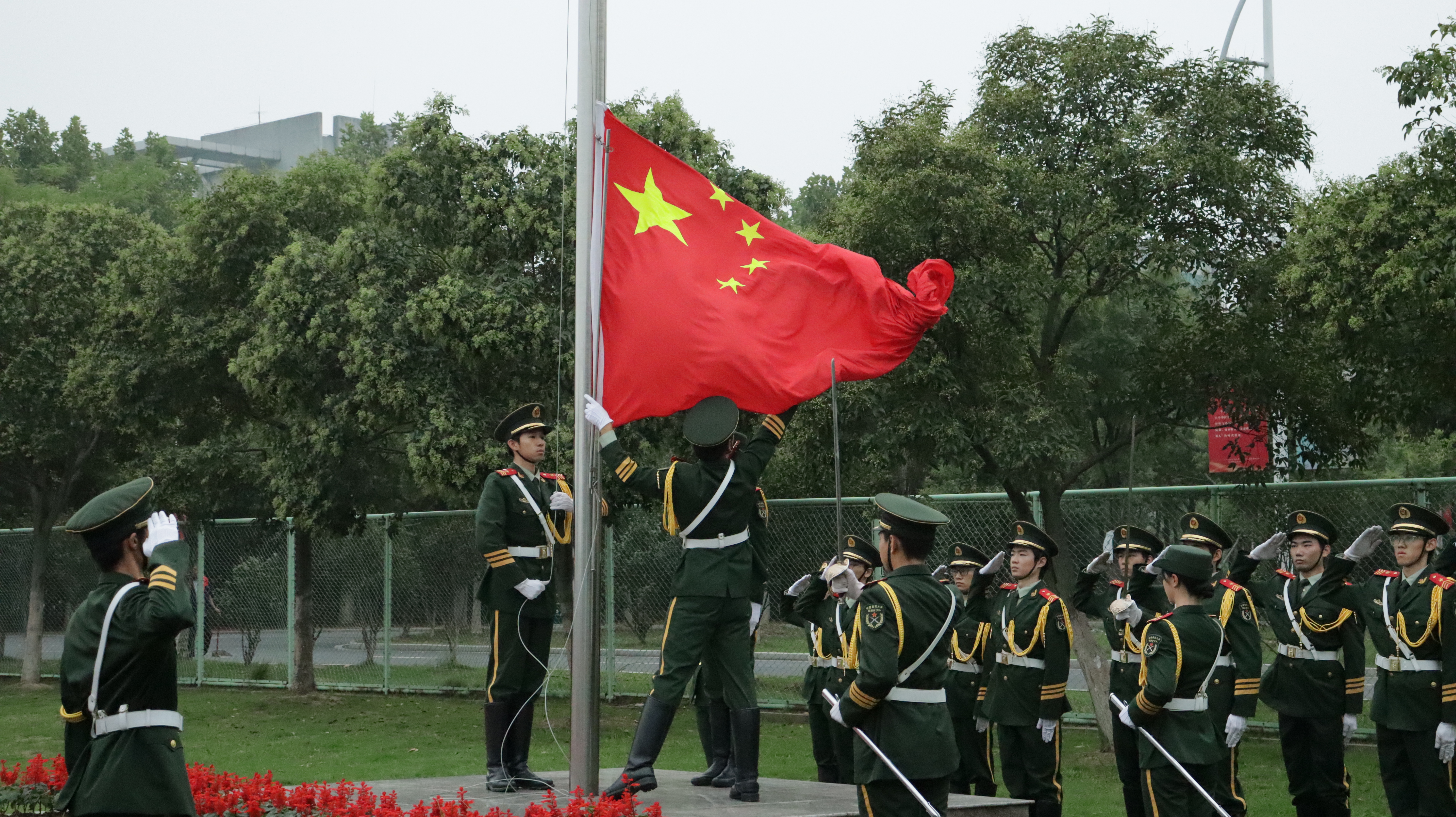 本网讯 喜迎国庆,欢度金秋。为持续加强校园精神文明建设,深化爱国主义情感熏陶。学校于10月1日清晨在南北校区操场举行了庄严的升旗仪式,共有来自全校不同学院500余名师生前来参加,共同庆祝中华人民共和国成立74周年。