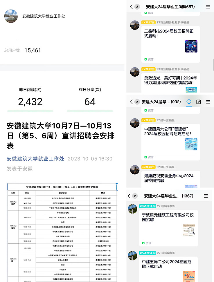 校园招聘开始前,学校进一步细化就业服务工作,印制《ku游官方2024届毕业生生源信息手册》3000余份,并通过学校和就业工作处的公众号、校友群、推介座谈会等线上与线下相结合形式,大力宣传2024届毕业生。就业工作处网站和公众号保持不间断更新,并建立全校2024届毕业生群,实时推送企业招聘信息和学校招聘会双选会信息,便于毕业生随时随地获取校招第一手信息。截至目前,校园秋季招聘信息浏览量累计已达96万人次。