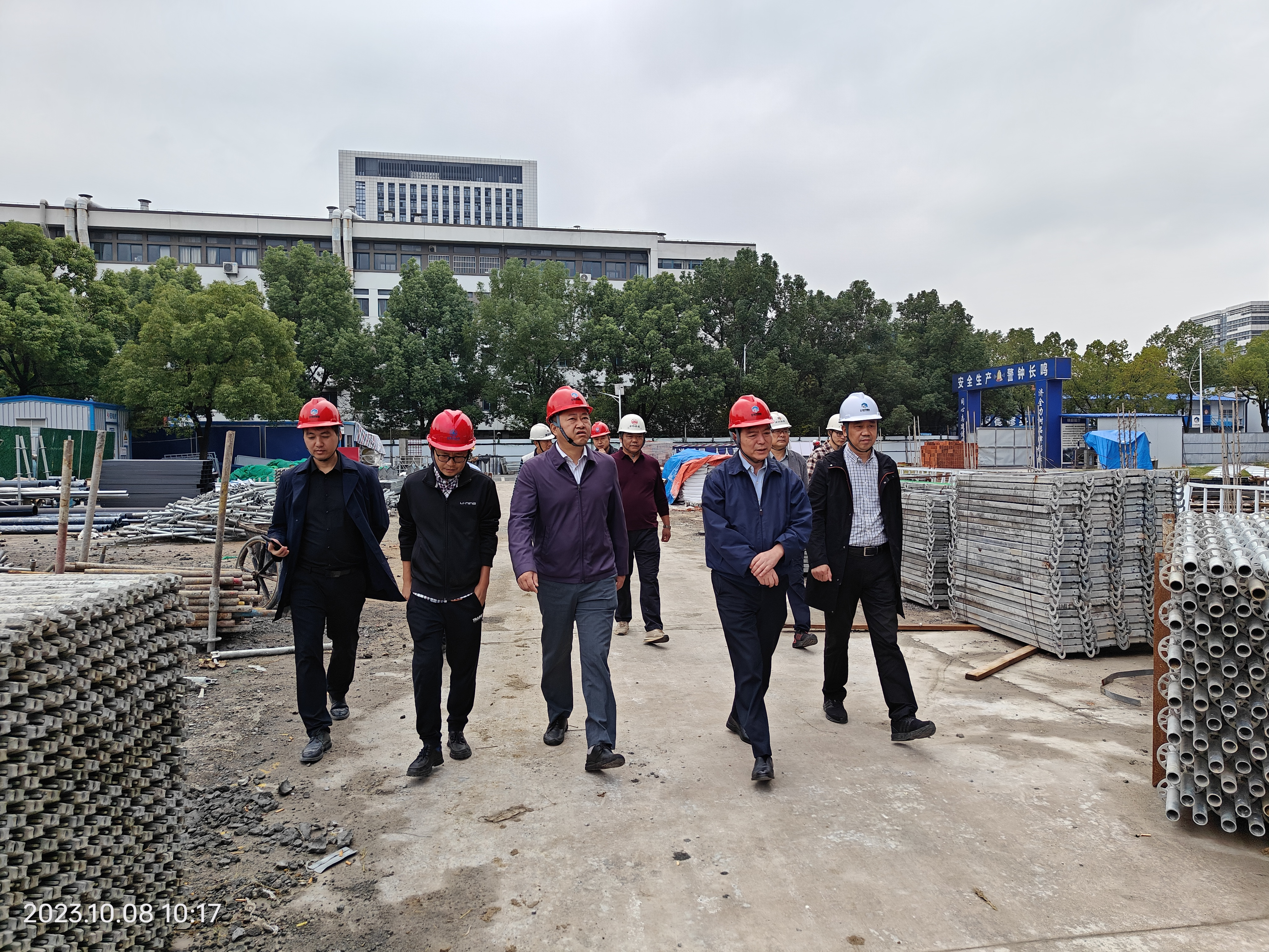 本网讯 为加快推进我校南校区教学楼(国土空间大数据中心)建设项目施工进度,10月8日上午,校党委副书记、校长黄显怀在国资处(基建办)相关负责同志陪同下,深入南校区教学楼(国土空间大数据中心)建设一线,督导在建项目建设情况。