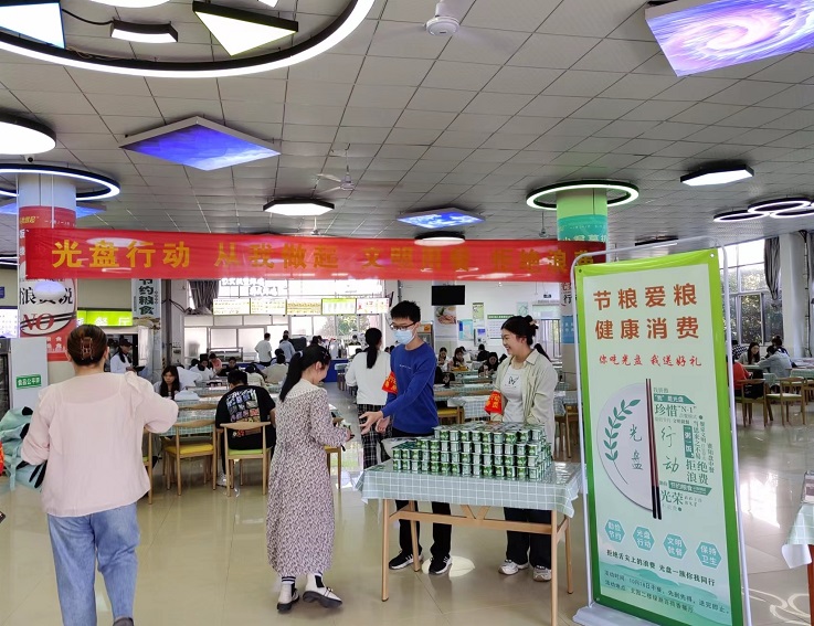 就餐大厅内,各食堂通过悬挂横幅、张贴海报、电子投屏播放等形式开展制止餐饮浪费宣传。由学生志愿者组成的光盘行动督导员小队,向同学们积极宣传“爱粮节粮、健康消费”活动理念,并劝导同学们成为光盘行动的一份子。同学们凭借光盘就可以在餐具回收处领取一份水果、酸奶或者小礼品,活动现场氛围热烈。爱惜粮食,杜绝浪费,让我们一起从现在做起,从自身做起,从点滴做起,让爱粮节粮的氛围在校园蔚然成风。(文/图:程少聪;审稿:唐黎)