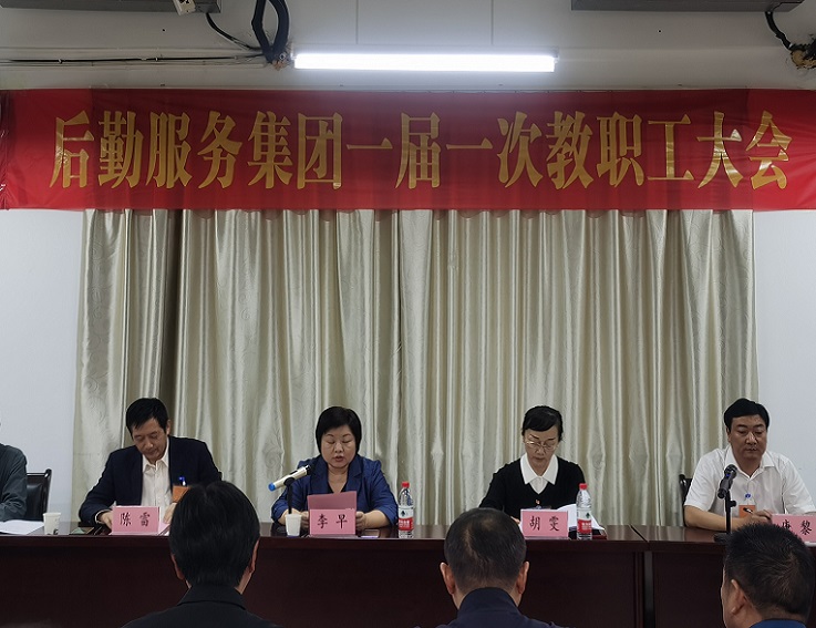 本网讯 10月26日,后勤服务集团召开一届一次教职工大会,校党委常委、副校长李早,校工会主席胡雯应邀出席大会,后勤51名教职工参加大会。