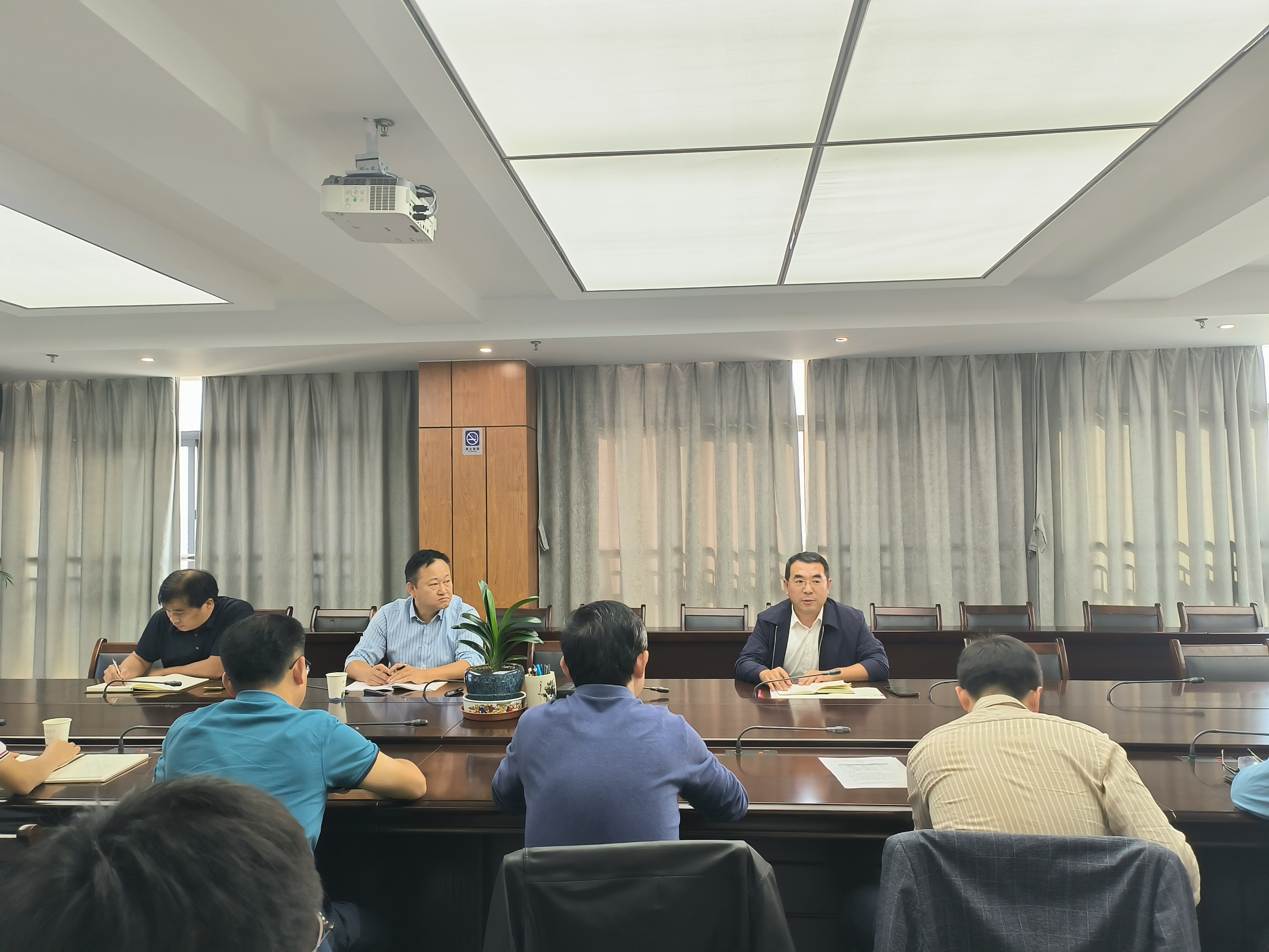 本网讯 近日,校党委常委、副校长蔡国军在徽风楼21楼第五会议室主持召开学校基本建设与科研成果转化专题研讨会,国资处、土木学院、建规学院、环能学院、材化学院等部门负责人以及设计单位机械工业第六设计研究院有限公司参加会议。