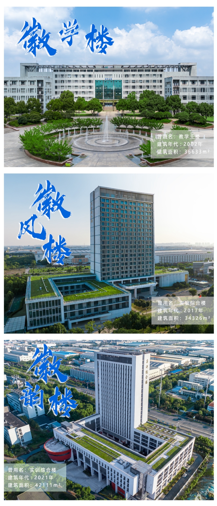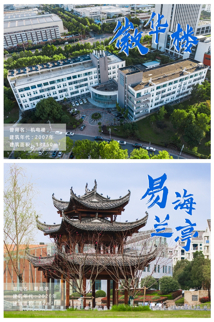 本网讯 “建工楼、建业楼、建树楼、建艺楼、徽学楼、徽风楼、徽韵楼、徽匠楼、徽文楼、徽华楼、易海兰亭...”在ku游官方建校65周年之际,学校的部分楼宇建筑物终于有了“新名片”。