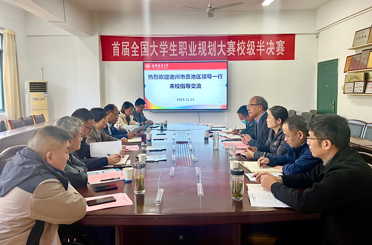 会前,池州市贵池区委常委、区政府副区长汪赛荣等一行9人来校交流对接。就业工作处负责人热情接待汪赛荣一行,并介绍学校毕业生就业情况。汪赛荣代表贵池区致辞,介绍贵池区区情、贵池区招引高校毕业生就业政策等。校地双方围绕毕业生就业实习实训等相关事宜展开交流讨论。