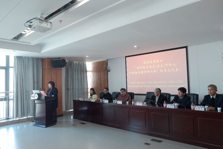 本网讯 11月18日,第24届安建大-安大-中科大代数组合国际研讨会(The 24th AHJZU-AHU-USTC International Joint Seminar on Algebraic Combinatorics)在南校区徽风楼21楼第一会议室隆重召开,来自俄罗斯、荷兰、日本等国的代数组合相关学科专家学者,以及南方科技大学、华东理工大学、南开大学、中国科技大学、安徽大学等三十余名师生代表参加了此次会议,校党委常委、副校长李早教授到会并致开幕辞。会议由数理学院谭莹莹教授主持。