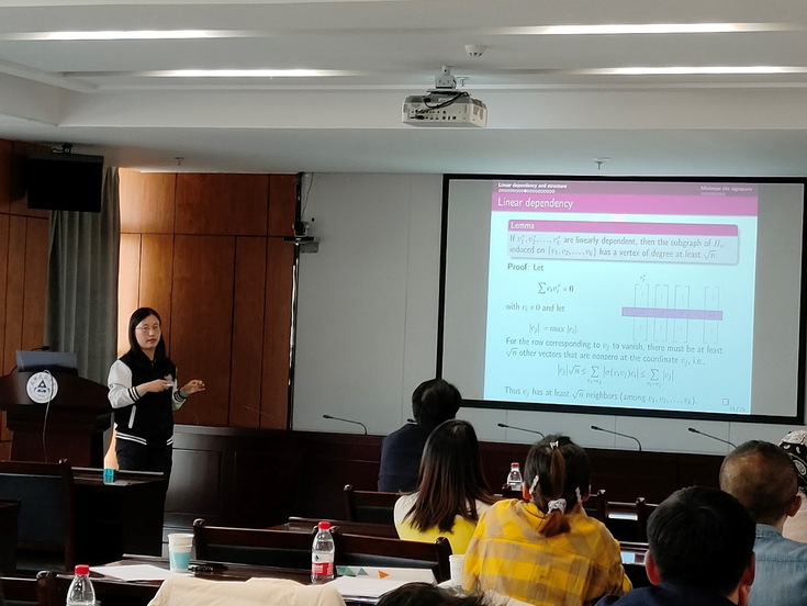 会上,国际数学家大会45分钟报告人俄罗斯籍Alexander Ivanov教授作了题为“Thompson群的几何性”的学术报告,华东理工大学林辉球教授、上海理工大学朱艳博士、南开大学王周宁馨博士、河北师范大学高锁刚教授等分别就代数组合领域的最新研究成果在会上进行了交流。