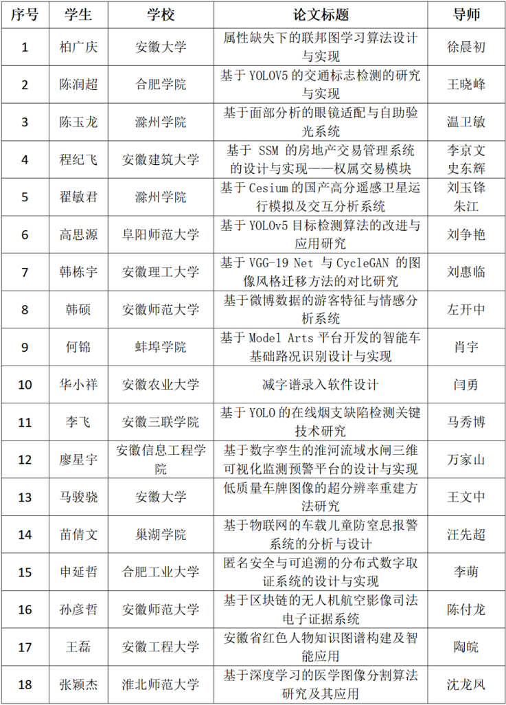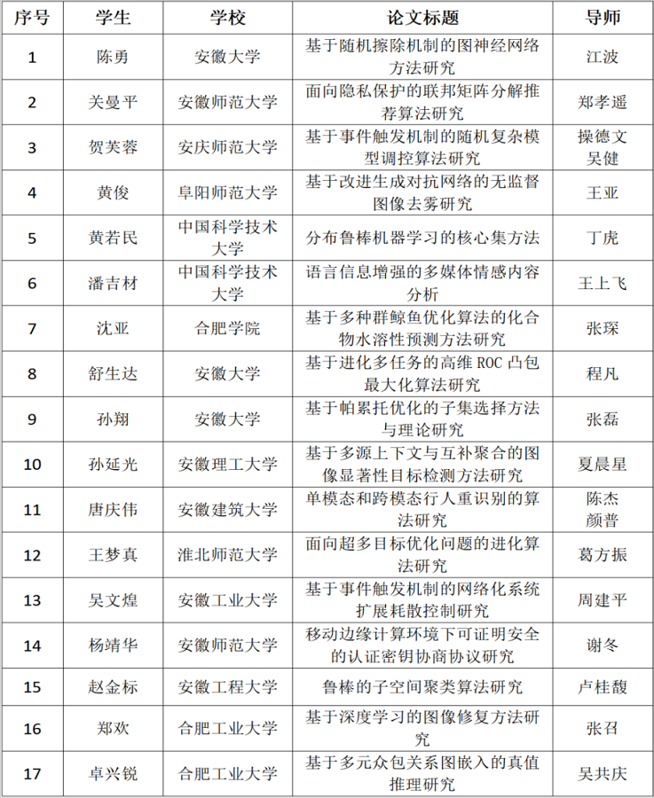安徽省计算机学会优秀硕士论文