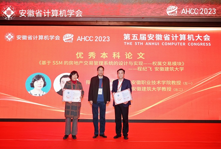 在铜陵市举行的第五届安徽省计算机大会(AHCC 2023)为期两天,以“智能制造 铜都领航”为主题。会议期间,学会颁发了2023年度“优秀科研成果奖”“优秀本科论文(设计)”和“优秀硕士论文”等奖项。