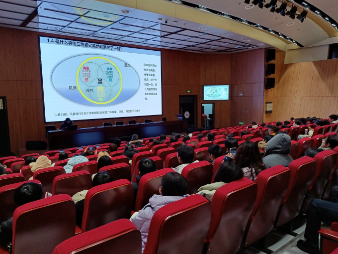 国务院特殊津贴专家、同济大学刘滨谊教授以《风景园林师的想象力——从园博园说起》为题在建规学院二楼报告厅开讲,来自校内外近100名师生参加报告会。