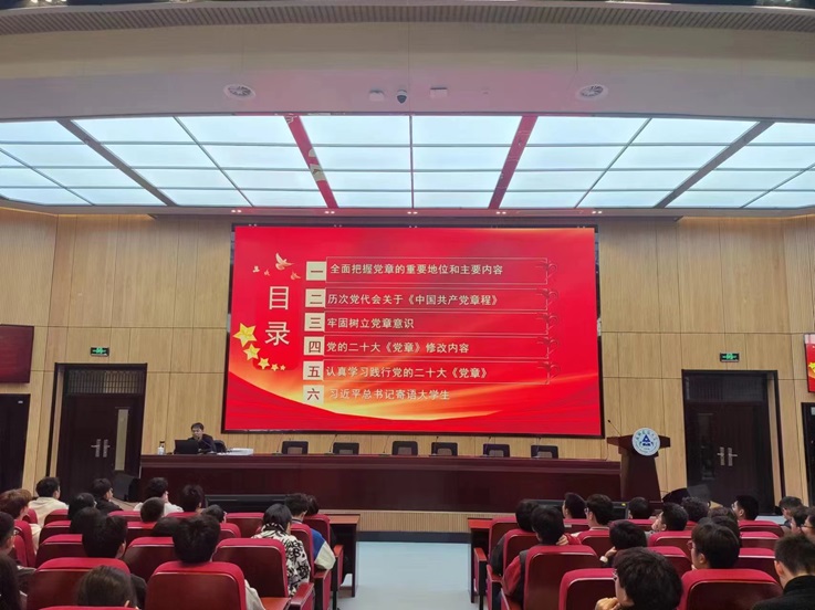 培训班上,吴运传以《中国共产党章程》为题为学员授课,从全面把握党章的重要地位和主要内容、历次党代会关于《中国共产党章程》、牢固树立党章意识、党的二十大党章修改内容、认真学习践行党的二十大党章、习近平总书记寄语大学生六个方面,详细回顾了党章发展的历程,深入解读了党章制定背景和重点内容,系统阐释了党章在党的事业和党的建设中的根本性规范和指导作用。