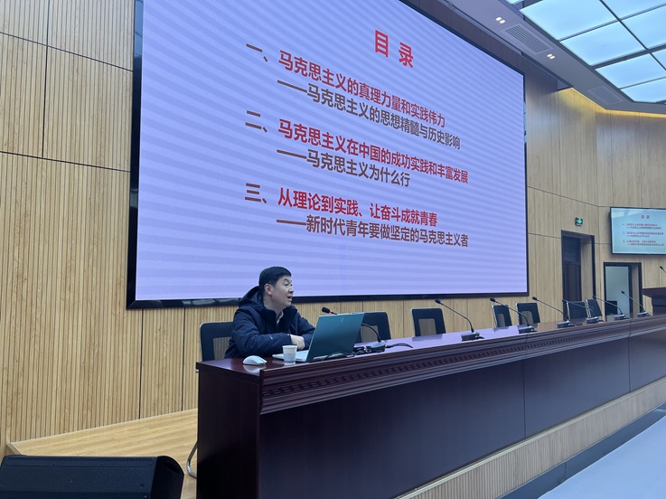 朱涛以《自觉成为坚定的青年马克思主义者》为题,围绕马克思主义的真理力量和实践伟力、马克思主义在中国的成功实践和丰富发展、从理论到实践,让奋斗成就青春三个专题史论结合、紧贴实际,用贴近青年的语言对马克思主义思想进行阐释解读。对广大青年团员深刻理解、准确把握和全面贯彻马克思主义思想提供了指导。