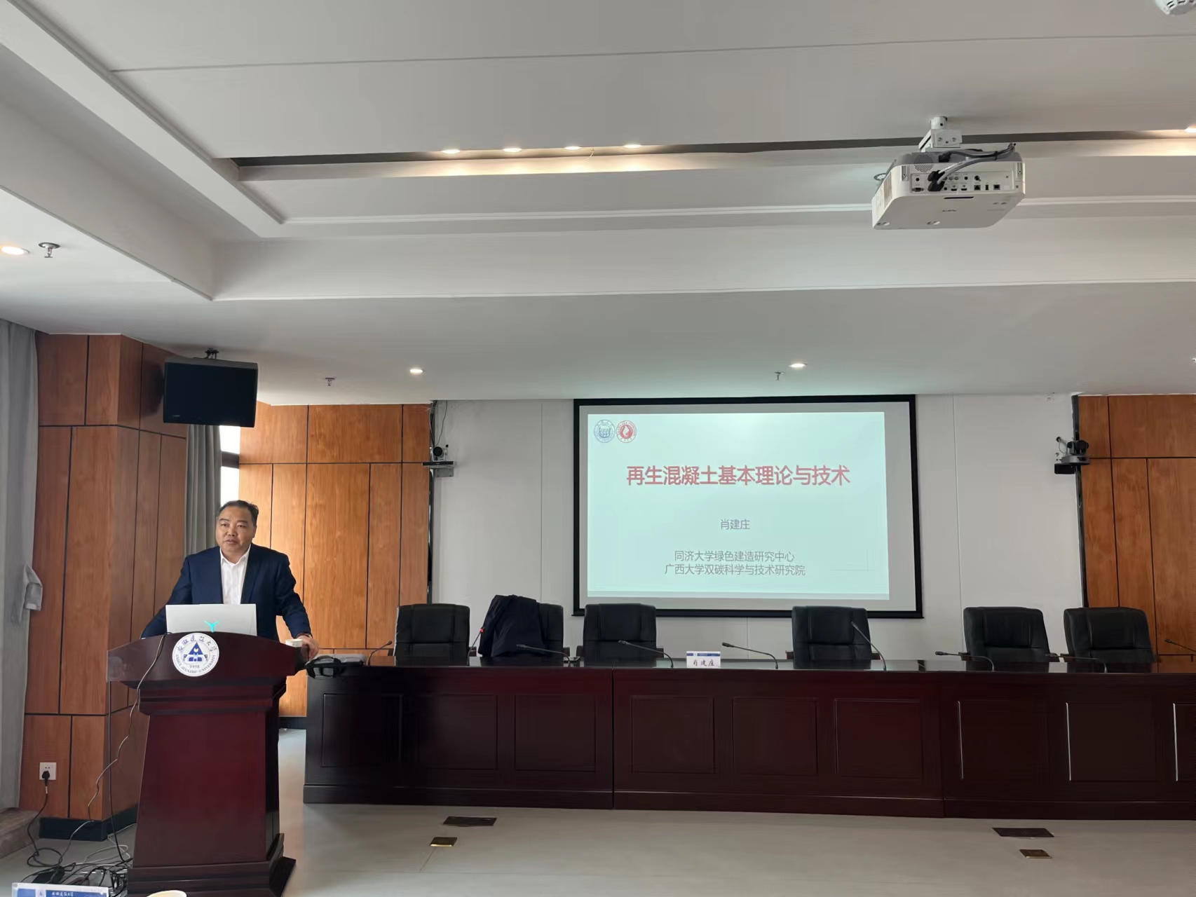 广西大学副校长肖建庄教授应邀为学科特区师生带来一场以“再生混凝土基本理论与技术”为题的学术报告。肖教授的报告从土木工程可持续发展面临的重大挑战出发,以再生混凝土技术为重点,阐述了混凝土再生原则与方法、再生混凝土制备理论、再生混凝土的创新发展、再生混凝土的应用准则等方面的内容,分享了课题组十余年来围绕再生粗骨料、再生细骨料与再生粉料混凝土开展的试验研究、理论分析与示范应用。报告现场,肖教授与师生进行了温馨的互动与交流。精彩的报告也引得土木工程学科特区教师们的争相提问,现场学术氛围浓厚。