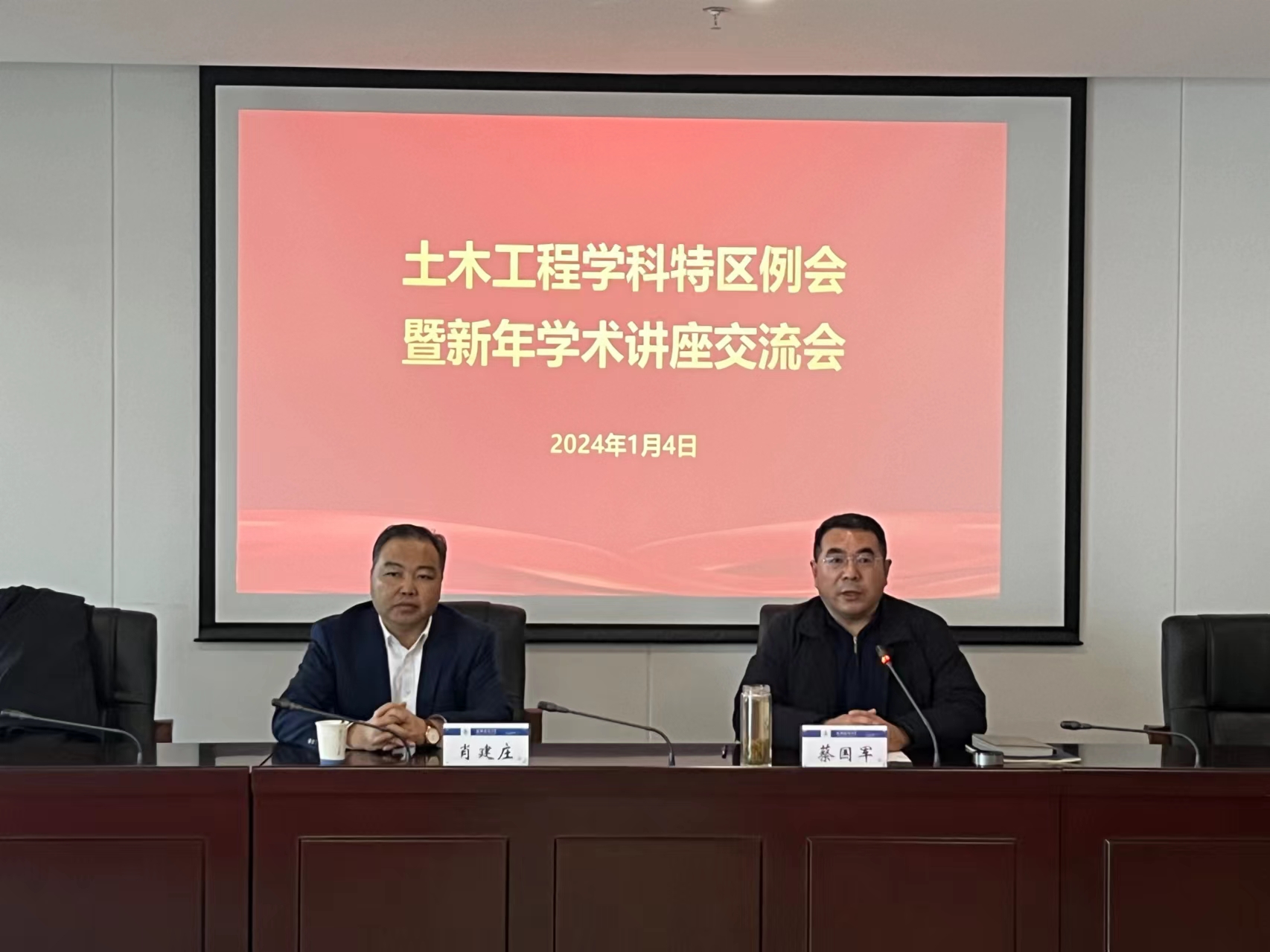 本网讯 1月4日,土木工程学科特区工作例会暨新年学术讲座交流会在实验综合楼21楼第一会议室顺利召开。会议由校党委常委、副校长蔡国军教授主持,土木学院、环能学院、材化学院相关负责人以及学科特区全体成员参加会议。