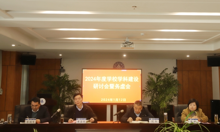 本网讯 1月12日,学校在南校区实验综合楼21楼第一会议室召开2024年度学校学科建设研讨会暨务虚会。校领导班子成员,各职能部门主要负责人、各学院主要负责人及部分骨干教师参加会议,会议由校党委副书记、校长黄显怀主持。