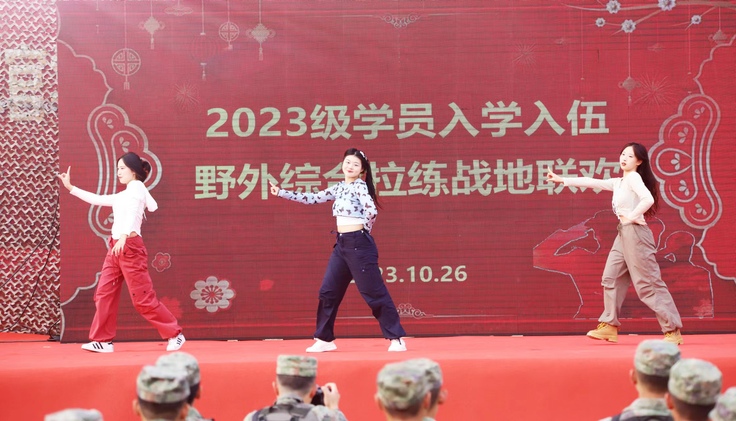 (二)国防教育体现培树学生爱国主义情操。学校高度重视全民国家安全教育日普法宣传活动,紧扣“贯彻总体国家安全观,增强全民国家安全意识和素养,夯实以新安全格局保障新发展格局的社会基础”宣传主题,联合属地公安入校开展“4·15”全民国家安全教育日法治宣传活动。应中国人民解放军某院校邀请,联合校团委组织学生,精心准备表演节目,赴部队学员野外训练驻地,开展战地慰问,教育学生决不能忘记那些守护岁月静好、一路负重前行的军人,激励更多的学生携笔从戎。