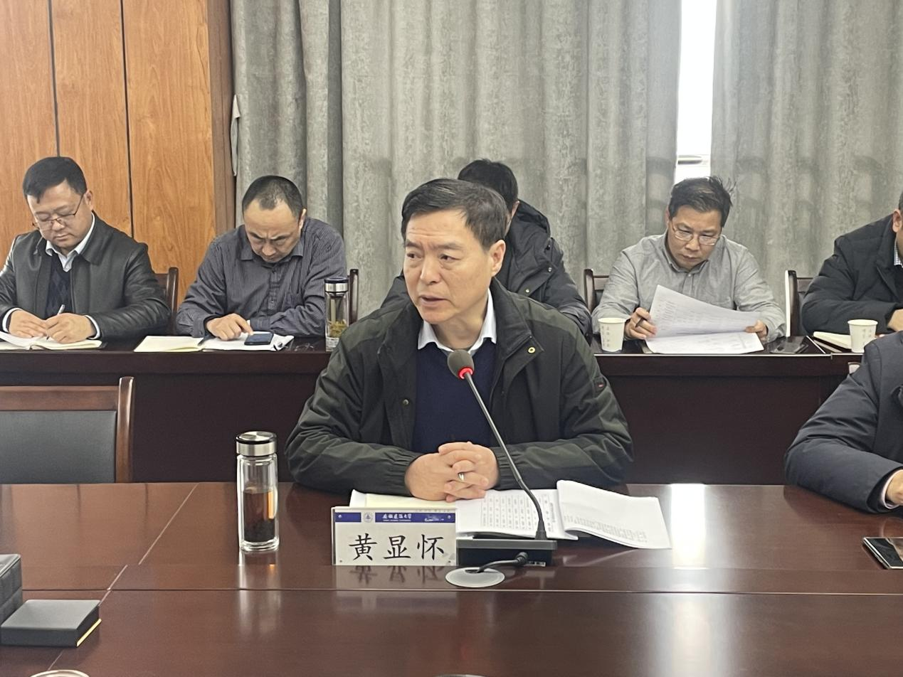 本网讯 1月15日, 学校在南校区徽风楼21楼第三会议室召开2023年度教材工作会议,校党委副书记、校长黄显怀,校党委常委、副校长闵杰出席会议,教材工作领导小组全体成员及教务处相关工作人员参加会议,闵杰主持会议。