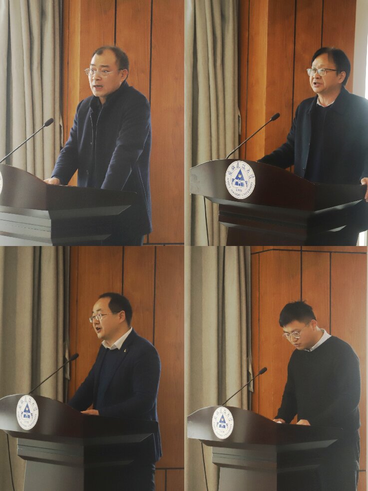 校党委常委、组织部(党校)部长吴运传通报了学校党建“双创”工作和“双带头人”工作室培育创建情况。闵杰宣读了第二批全省高校党建“双创”培育创建单位、星级党支部、学校“双带头人”教师党支部书记工作室建设单位名单。校领导依次为获国家级、省级新时代党建示范创建与质量创优验收单位(培育单位)的学校基层党组织,学校教师党支部“双带头人”工作室等授牌。