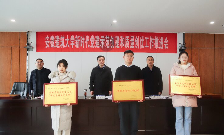 全国党建工作“样板支部”、安徽省高校五星级党支部——电子与信息工程学院党委书记孙长城;安徽省高校党建工作“标杆院系”——环境与能源工程学院党委书记戴前宏;安徽省高校党建工作“样板支部”、安徽省四星级党支部——数理学院学生第一党支部书记水天柱;校级“双带头人”工作室代表——公共管理学院人力资源与社会保障系教师党支部书记连瑞瑞分别作交流发言。