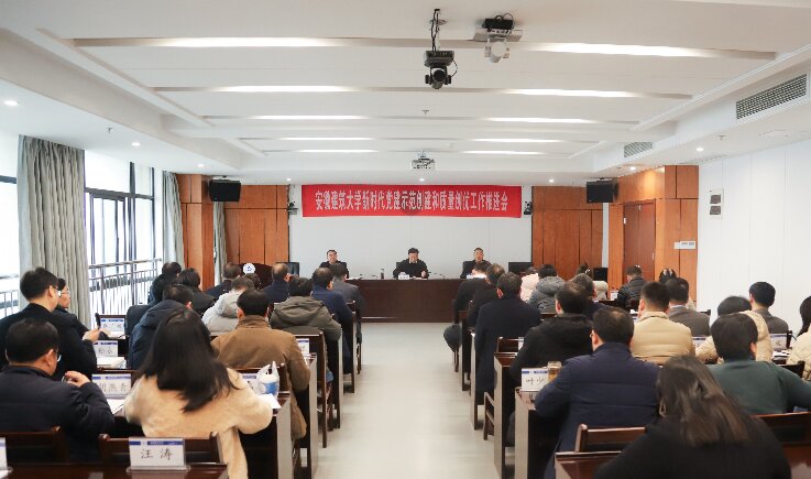 本网讯 1月17日,学校在南区徽风楼21楼第一会议室召开新时代党建示范创建和质量创优工作推进会。校领导黄显怀、闵杰、蔡国军出席大会,学校党建工作领导小组成员单位主要负责人,各基层党委(党总支)书记、专(兼)职组织员,校级、省级及国家级“标杆院系”“样板支部”负责人,校级“双带头人”工作室负责人参加会议。校党委常委、副校长闵杰主持会议。