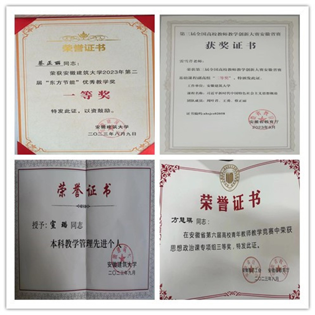 引育并举强队伍。学院从师资队伍、学科建设等方面发力,不断提升发展“硬实力”和“软实力”。学院通过引育并举,不断强化思政课教师队伍建设。2023年,学院柔性引进学科学术带头人1人,1人入选安徽省高端人才引育行动项目青年拔尖人才青年学者,1名思政课教师获“安徽省最美教师”荣誉称号,2名老师分别获得高校青年教师教学竞赛三等奖、教学创新大赛安徽赛区二等奖,1名老师获校第二届“东方节能”优秀教学奖一等奖。过去的一年,学院依托硕士点申报工作,以推进马克思主义理论创新和理论武装为主线,准确把握马克思主义理论学科的内涵和特点,全面提升马克思主义理论学科的核心竞争力。