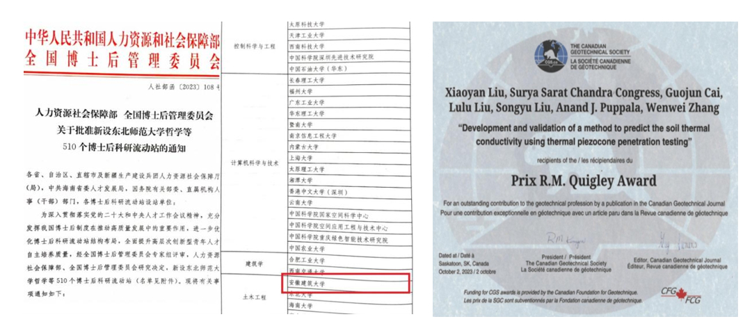学院党委充分发挥党建引领和示范作用,推进党建工作和学科发展“双融合、双促进”,努力开创高质量党建护航高水平学科建设的良好局面。以学科建设为龙头,新设学科建设办公室,重点抓人事人才和学科建设工作。2023年,学院学科建设取得新的突破,土木工程高峰学科综合评价为优秀;博士点开始招生;学校首个博士后科研流动站——土木工程博士后科研流动站获批。以学科特区为引领,对标国家一流学科标准,以体制机制创新为路径,以具有高显示度的科研成果为目标,结合国家重大战略和安徽省重点新兴产业需求,凝练学科攻关方向,在重大项目研发及关键技术等方面发力,形成具有较大国内影响力和核心竞争力的优势学科方向,蔡国军教授团队发表论文荣获2023年“R.M.Quigley奖”。