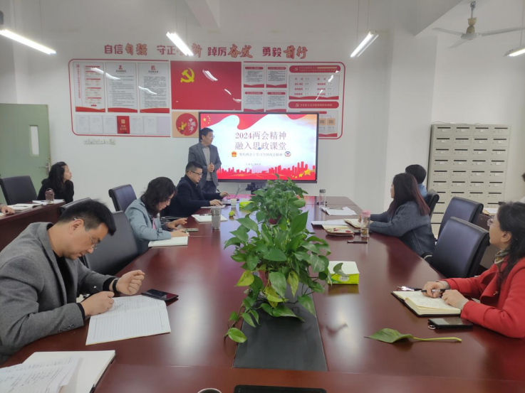 本网讯 为深入学习领悟全国两会精神,第一时间推动两会精神进课堂,充分发挥思政课的主阵地主渠道作用,3月13日,马克思主义学院以“2024年全国两会精神融入思政课堂”为主题,在徽学楼1711会议室开展了集体备课活动。备课会由习近平新时代中国特色社会主义思想概论教研室主任周叶君老师主讲,学院全体教师参加活动。