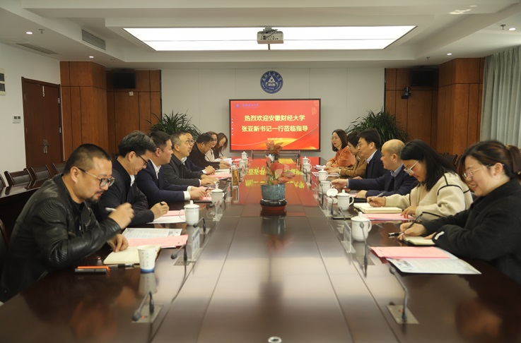 本网讯 3月15日,安徽财经大学党委副书记张亚新一行6人来校调研交流。学校在南校区徽风楼21楼第二会议室召开座谈会,校党委常委、副校长闵杰出席会议,办公室、宣传部、国资处(基建办)、经管学院、档案馆等单位负责人和艺术学院教师代表参加会议。